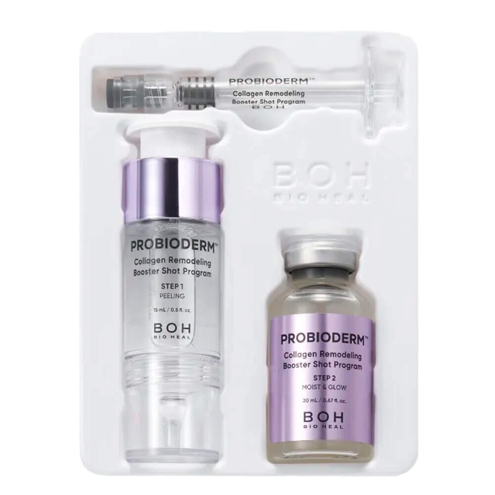 Двухфазная программа BIOHEAL BOH Probioderm Collagen Remodeling Booster Shot Program разглаживает рельеф кожи, повышает упругость, сокращает глубину морщин и расширенных пор.