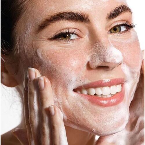 Взбейте в руках и нанесите средство на лицо, помассируйте, затем аккуратно смойте теплой водой.