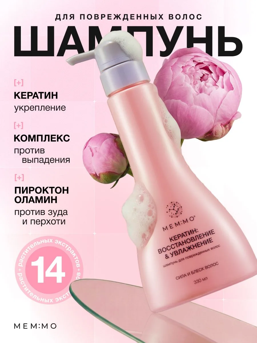 —MEM:MO Шампунь для поврежденных волос с Кератином, 330мл