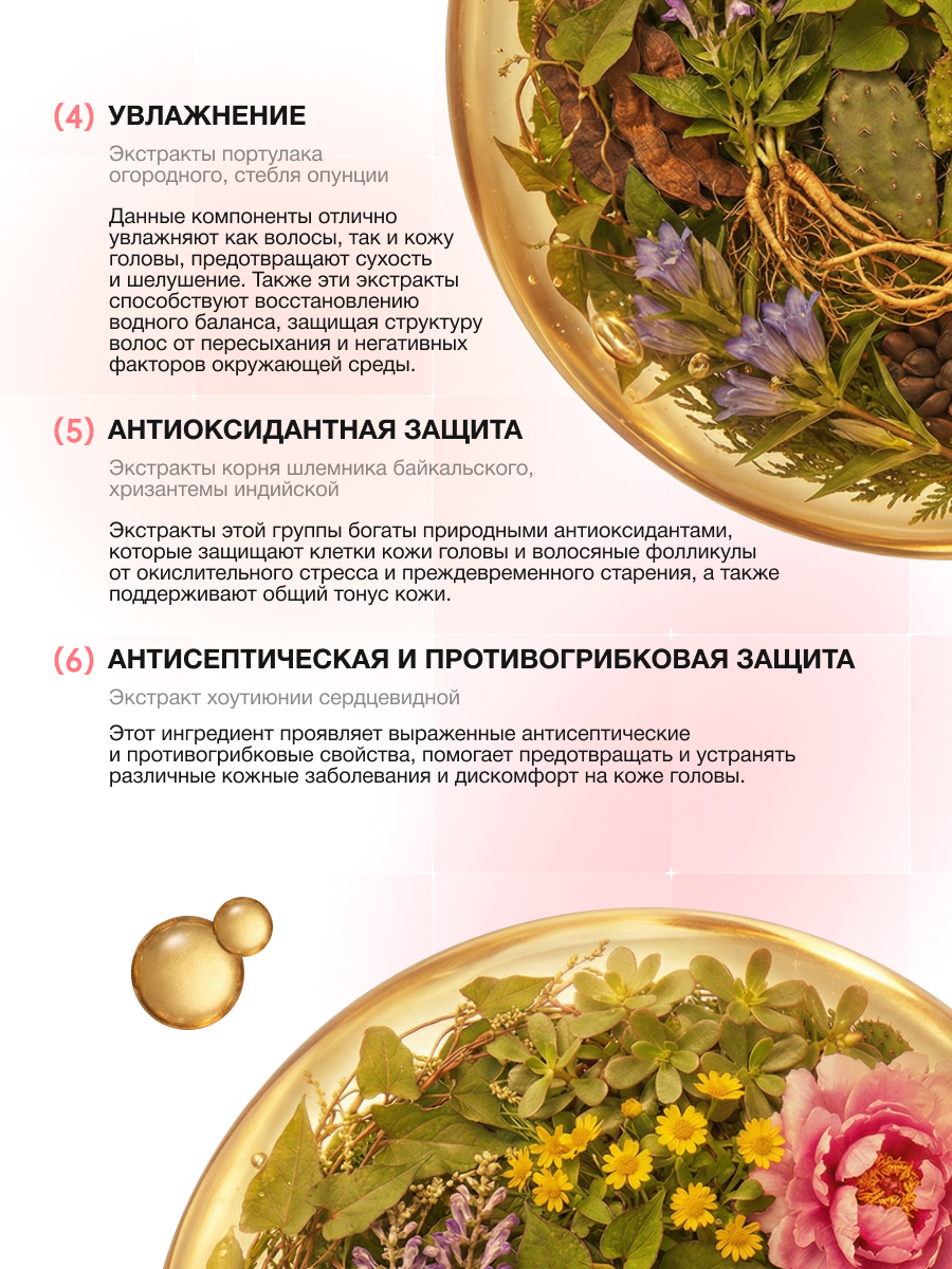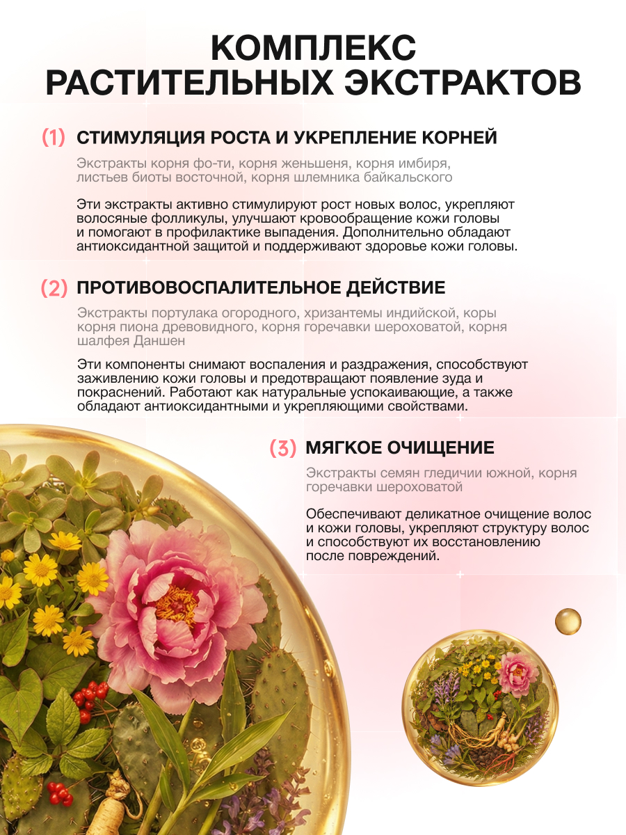 · Результат: Улучшенное питание фолликулов, укрепляющий и противовоспалительный эффект, создание оптимальной среды для здорового роста.